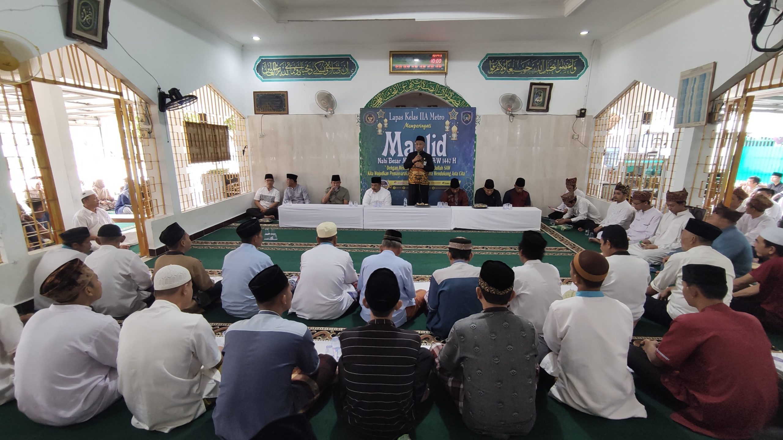 Indonews.web.id,  METRO – Lembaga Pemasyarakatan (Lapas) Kelas IIA Metro menggelar peringatan Maulid Nabi Muhammad SAW 1447 H di Masjid At-Taubah Lapas Metro pada Kamis, (18/9/2025).