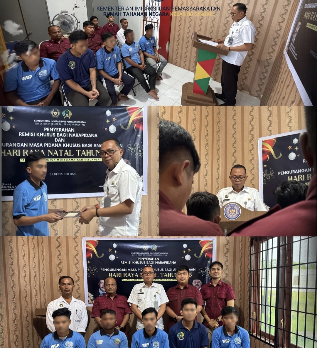 Indonews.web.id, Aceh, Singkil- Dalam rangka peringatan Hari Raya Natal Tahun 2025, Rumah Tahanan Negara (Rutan) Kelas IIB Singkil memberikan Remisi Khusus Keagamaan kepada warga binaan pemasyarakatan yang beragama Nasrani, Kamis (25/12/2025)