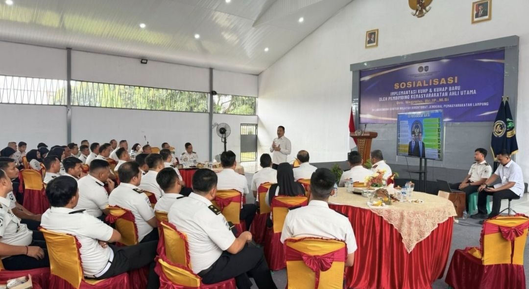Indonews.web.id, BANDAR LAMPUNG – Jajaran Lembaga Pemasyarakatan (Lapas) Kelas IIB Kotaagung menghadiri kegiatan Sosialisasi Implementasi Kitab Undang-Undang Hukum Pidana (KUHP) dan Kitab Undang-Undang Hukum Acara Pidana (KUHAP) terbaru. Kegiatan ini dipusatkan di Lapas Narkotika Kelas IIA Bandar Lampung pada Rabu (11/2/2026).