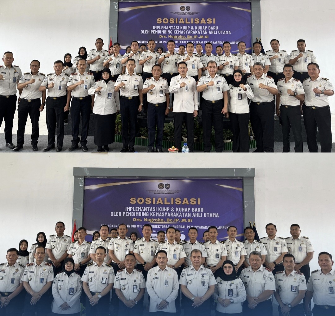 Dengan adanya sosialisasi ini, diharapkan seluruh jajaran pemasyarakatan di Provinsi Lampung, termasuk Lapas Narkotika Kelas IIA Bandar Lampung, semakin siap dalam menerapkan KUHP dan KUHAP Baru secara profesional, akuntabel, dan berorientasi pada prinsip keadilan serta perlindungan hak asasi manusia (Zul/Rls).