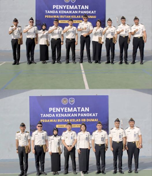 Indonews.web.id, Riau, DUMAI – Rumah Tahanan Negara (Rutan) Kelas IIB Dumai menggelar apel khusus dalam rangka penyematan kenaikan pangkat bagi tujuh orang pegawai, Senin pagi (23/02/2026). Prosesi yang berlangsung di lapangan serbaguna Rutan Dumai ini berjalan dengan khidmat dan penuh antusiasme.
