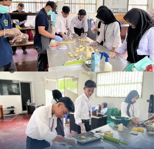 Semangat kebersamaan terlihat jelas saat para warga binaan berbagi tugas dengan para mahasiswa dan peserta magang dalam setiap tahapan pembuatan roti.