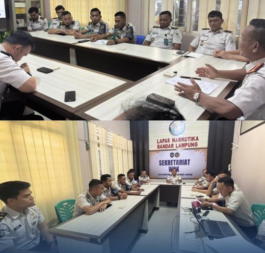 ​Rapat koordinasi ini dipimpin langsung oleh Kepala Lapas (Kalapas) Narkotika Bandar Lampung, yang membahas peta jalan pelayanan selama momen Lebaran, mulai dari manajemen kunjungan hingga penguatan sistem pengamanan.